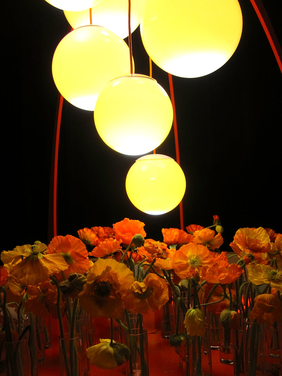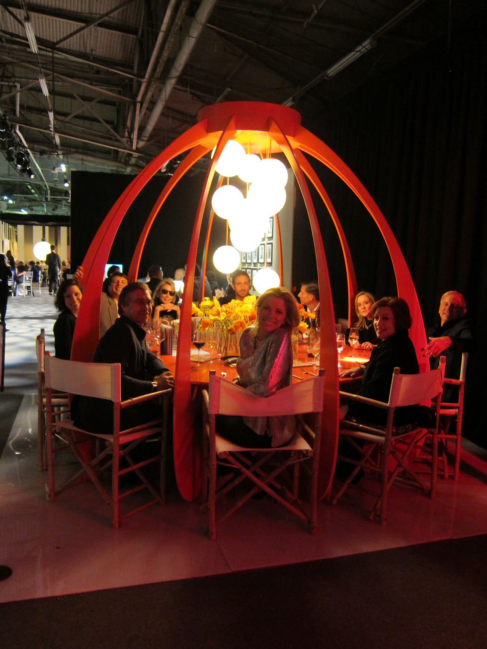 Marc Blackwell's whimsical design featured a comma between diners to honor the many individuals who have joined together to fight HIV/AIDS. Studio Bechtold worked with Blackwell's team to develop the engineering plan for the exhibit, and frequent partner Aaron Meadow lent his lighting design talents to give the space a warm, inviting glow.