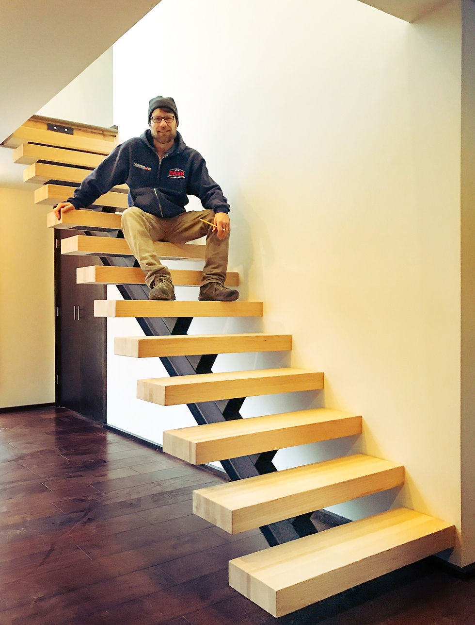 A flitch beam stair stringer. Invisible and incredibly strong.